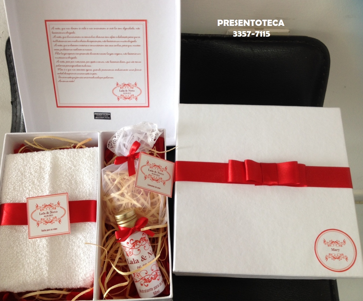 2-Caixa para os padrinhos com aromatizante de ambientes, hidratante, sabonete líquido e amêndoas;